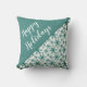 Het moderne Manuscript Snowflakes Sierkussen van de Kerstfeestdag. Stijlvolle kerstvakantie gooit kussen met een Prettige feestdagen wit trendy script. De helft van de kussen is blauw en de andere helft heeft een prachtig sneeuwvlokpatroon. Geweldige kerstkussen voor een kerstfeestmaal gevoel of een geschenk voor een familie en vrienden. U kunt de tekst aanpassen of wissen.