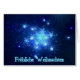 Een fractale weergave van de nachtelijke hemel. Veel sterren in de blauwe uitgestrektheid. De tekst "Frohliche Weihnachten" staat in het gloeiend blauw en wit.