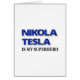 Nikola Tesla is mijn superheld. Tekstafbeelding in zwart-wit en blauw met witte blikseminslag.