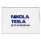 Nikola Tesla is mijn superheld. Tekstafbeelding in zwart-wit en blauw met witte blikseminslag.