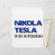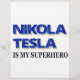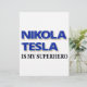 Nikola Tesla is mijn superheld. Tekstafbeelding in zwart-wit en blauw met witte blikseminslag.
