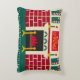 Afbeelding dat op rechthoekkussen is afgedrukt, is van een foto van een originele wandbekleding die met de hand is ontworpen en Copyright © door de gepubliceerde ontwerper Delores Chamblin. Het afbeelding van de unieke handgemaakte baksteenhaard rode gouden groene en witte kerstmuur hangt op het vakantiedorf.