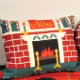 Noel Mantle Brick Fireplace Designer Crochet Print Accent Kussen