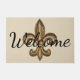 welkom in script doormat met een groot gouden fleur de lis symbool.
