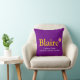 Un arrière - plan en violet graphique gras avec fleurs graphiques et nom personnalisé en lettres texte couleur coussin d'impression. Il lit actuellement Kelsey ou peut être personnalisé avec votre propre nom court. Ce motif original de Sarah Trett www.sarahtrett.com pour www.mylittleeden.com
