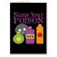Cette drôle d'illustration de dessin animé "Name Your Poison" présente une bouteille verte avec un crâne jaune dessus, une bouteille de lune violette avec des x et une bouteille d'orange avec une bombe rouge dessus ! Ce design cool d'humour à boire est le cadeau parfait à acheter pour un barman qui vit dans le noir ou qui aime ses boissons pour être amusant et dangereux!