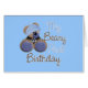 Un ours de nounours mignon de garçon d'anniversaire avec le chandail à motifs de losanges de bleus layette légers et le casquette bleu indique que mon premier anniversaire de Beary fait un grand ęr cadeau d'anniversaire pour le garçon d'anniversaire.