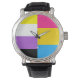Show off your personality with this nonbinary flag and pansexual flag combined in one watch to show off your gender pronouns and sexuality. A cool non binary panromantic gift for a queer person that goes by they/them.