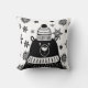 Zwart-witte, klassieke Noordse illustratie van een beer met sneeuwvlokken die eromheen vallen.