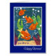 Een leuk Wenskaart, 'Van ons allemaal' voor het Perzische Nieuwjaar, met vier schattige goudvissen die je wensen, 'Happy Norooz', uit een handbeschilderd papieren collage van Judy Adamson. U kunt het binnenbericht van deze kaart desgewenst personaliseren.