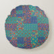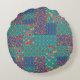 Een chic Round Pillow, met een nostalgische neplappendeken van granny Print patronen. Een deel van het collectie "Korny Print" van Posh en Painterly, van een met de hand geschilderd papieren collage door Judy Adamson, kan dit patroon worden aangepast aan elke Pillow.