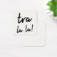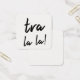 Vous avez toujours marché au battement de votre propre batteur et cet ensemble de cartes de note carrées minuscules reflète cela brillamment. Sur l'avant, rendu dans un joli, moderne, la police manuscrite de noir lit simplement, "La de La de Tra !" L'autre côté est laissé intentionnellement vide ainsi vous pouvez écrire les notes personnelles. ///c'est toujours amusement pour découvrir une manière simple d'écarter l'acclamation et d'éclairer quelqu'un jour. Quelle meilleure manière est-ce que de me dire "me pense à vous" ou "avez-vous ceci" ou est-ce que "je sais que vous avez une difficulté mais je suis ici pour vous" que pour laisser tomber une carte dans quelqu'un poche, voiture ou gamelle ? Ces cartes de message vous aident à ajouter votre contact spécial à vos interactions quotidiennes. La liste de manières que vous pourriez choisir pour employer ces derniers est presque sans fin et je conçois plusieurs différentes collections de ces derniers dans juste ce but. L'étincelle de l'idée était égoïste : Je veux personnellement des cartes comme ceci parce que j'aime laisser de petites notes pour les gens qui importent à moi. (C'est amusement pour laisser l'encouragement pour que les étrangers trouvent, aussi.) J'ai eu besoin d'un nouvel outil pour mon plan, et Zazzle le rend si facile de concevoir une telle sucrerie. Qui indique que vous devez seulement employer la technologie de carte de visite pour les besoins d'affaires ! ? Il s'est produit à moi que d'autres pourraient apprécier avoir accès à ces derniers, aussi ! Tellement ici vous êtes. Prenez un paquet pour vous-même - et un ami, trop - et débutez à écarter plus de joie, d'acclamation, de bonheur, de gentillesse, d'amour et de positivité que vous même avez fait avant ! ///a conçu par la mélodie Watson pour Muserie imprimé.
