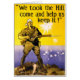 Affiche australienne de la Première Guerre mondiale par Harry T. Weston, 1915, montrant un soldat sur un sommet d'une colline au-dessus d'une bataille navale, faisant probablement référence à la bataille de Gallipoli où de nombreuses vies australiennes ont été perdues.