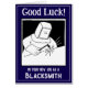 Dans votre nouveau travail en tant que forgeron. Illustration de forgeron. Personnalisez avec votre choix de texte et de message intérieur. Bonne carte de chance pour un forgeron ou un ouvrier de métal.