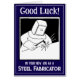 Bonne chance dans votre nouveau travail en tant que fabricant d'acier. Illustration de Fabricant d'acier. Personnalisez avec votre choix de texte et de message intérieur. Bonne carte de chance pour un Fabricateur d'acier, un métallurgiste ou un ouvrier du métal.