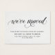 Ce changement de carte d'adresse est la taille idéale pour intégrer votre carte de remerciement mariage ou tout type de correspondance. Ils mettent en avant les mots "nous avons bougé" dans la typographie noire moderne, sur un papier d'aquarelle blanc look arrière - plan.