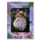 Félicitations, vous avez un nouveau texte soeur sur carte lilas floral bordé avec jolie petite poupée en robe lilas dans la scène de jardin avec arrière - plan floral
