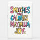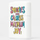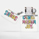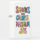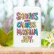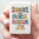 Een handgetekende illustratie van een zin met de woorden Smooches, Zero Calories, Maximum en Joy in een vet, kleurrijk, speels lettertype. Een kleurrijke boodschap van nul calorieën en maximale vreugde