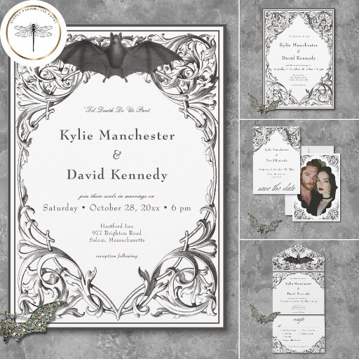 Victorian Bat Until Death Black & White WeddingConçu par Kathe Santillo