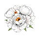 This wedding place card features a minimalist design with a soft gray background, creating an elegant and clean aesthetic. The top center showcases the word "table" in a graceful cursive script, followed by customizable lines for personalization. A detailed illustration of a white peony with vibrant orange stamens adds a touch of botanical elegance to the left side. The overall mood is calm and sophisticated, perfect for adding understated beauty to your wedding reception.