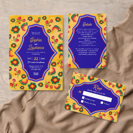 Ajoutez un éclat de couleur festive à votre réception avec ce numéro de table mexicain jaune floral. Fleurs peintes à la main rouge, jaune et verte, inspirées de l'art folklorique mexicain, ce design apporte une énergie joyeuse et un charme culturel à chaque table d'hôtes. Placés contre un arrière - plan jaune chaleureux, les fleurs audacieuses encadrent magnifiquement le numéro de table dans une typographie élégante et facile à lire. Parfait pour un mariage de destination inspiré par la fiesta ou coloré, cette carte de numéro de table ajoute une touche artistique et vivante à votre décor de fête.