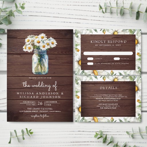 Daisies Floral Mason Jar Wood Wedding SuiteConçu par Shabbir D