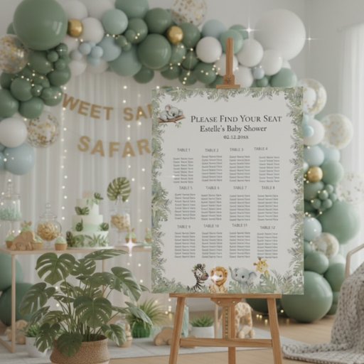 Help your guests find their seats easily with this Charming Wild One Table Number Card. The design showcases the delightful watercolor safari animals and tropical foliage, ensuring consistency across your table settings. These charming cards are an essential piece of decor for a well-organized event, beautifully guiding guests at your boy baby shower celebration.