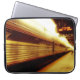 Op de originele foto van ZoeSPEAK op deze 15"-laptophoes, stopten passagiers in de verte van boord van de trein op spoor 2. Helder zonlicht treft de bovenkant van de glanzende metalen trein, en een bord met de datum en tijd kan worden gezien hangend onder het platformdak, met de rest van de trein en het platform in de schaduw.
