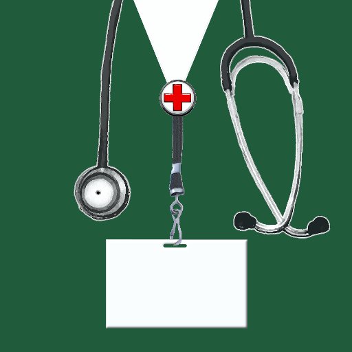 Het afstudeerder van de Creatieve Verpleegschool nodigt uit of kondigt aan met groene ziekenhuisscrubs, een leuk Zwitsers zakmes en stethoscoopkunst.