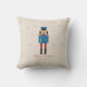 Un coussin de Noël avec l'illustration d'un Casse-Noisette et quelques étoiles sur un arrière - plan brun clair. Parfait pour offrir ou pour votre décoration de Noël.