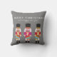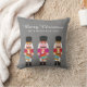 Vakantigend kerstkussen voor kerstversiering, met een grijs kussen met drie kleurrijke nootmuskers met uw aangepast vakantiebericht. Elke kant van de kussen staat: "Vrolijk kerstfeest en een gelukkig nieuwjaar". Één kant is in een blokdoopvont en handgeschreven manuscript, is de andere kant in een traditionele manuscriptdoopvont en blokdoopvont. De voedingskraker wordt aan beide zijden herhaald. Alle tekst is volledig aanpasbaar en kan worden gewijzigd in een suite met uw behoeften. Om doopvonten of inktkleur te veranderen, gebruik de pas het eigenschap aan.