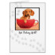Ce chiot dachsund chéri reste chaud et confortable dans une tasse. Coupe rouge avec points doux ajoute au charme car vous souhaitez que quelqu'un se sente bien et se sente mieux. Les Empreintes de pattes s'alignent le long de l'avant de la carte.