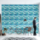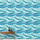 Ideaal voor elke strandinrichting; kust-eiland restaurant; hotels aan zee; lodges; resorts en chalets, deze donkere en turquoise blauw gemengd met witte muurschildering heeft horizontale golvende golven en kleine witte paarden die van links naar rechts stromen. Breng het strand binnen, met dit moderne, eigentijdse en elegante naadloze patroon dat gemakkelijk te pellen is en aan zowel gladde als gestructureerde muren kleeft.