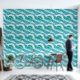Ideaal voor elke strandachtige instelling; kustrestaurant; hotels aan zee; lodges; resorts en chalets, deze turquoise en bleek blauw gemengd met witte muurschildering heeft diagonale golven in Japanse stijl oceaan. Breng het strand binnen, met dit moderne, eigentijdse en elegante naadloze patroon dat gemakkelijk te pellen is en aan zowel gladde als gestructureerde muren kleeft.