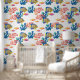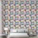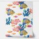 Waterverf oceaan zeebodem met vis en koraalrif behang in blauw en koraal.