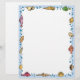 Deze schattige brievenkop van het oceaanleven kenmerkt een grens van vis, zeeschalen en zeepbellen.