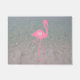 Een doormat met een afbeelding van een roze flamingo boven een achtergrondfoto van oceaanwater. Pas het monogram aan.
