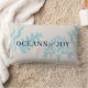 Cette belle maison de plage coussin présente des coraux et des coquillages avec le dicton des océans de joie. Front de couleur naturelle et arrière marine foncé.