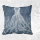 Midnight Dark Blue en Faded Denim Blue Waterverf met White Octopus Illustration uit de jaren 1800. Verstoorde waterverf in botsing met de 19e-eeuwse octopusafbeelding in witte, denim, middernacht blauw, schemerblauw, klassieker blauw en jachttones. Waterverf kussen van het leven van het zee. Deze oceaanblauwe kussen met de intelligente en merkwaardige octopus zijn perfect voor stranddekken, tropische wandkunst, kustbeugel, strandbeestjes en badplaatsen.
