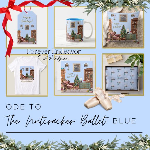 The Ode to the Nutcracker Ballet Blue Customize Tile Coffee Mug displays a nod to the beloved classic ballet that appears around Christmas time each year. It holds a special place in the hearts of many including myself. I designed this from a place of affinity and admiration for the time-honored world-class work of art that is The Nutcracker Ballet. Hope you enjoy this festive coffee mug and gifting it to loved ones. This family-friendly design is also great for gifting teachers, co-workers, and all those who enjoy the ballet. It has a traditional, slightly vintage feel that embraces the spirit of Christmas. Bundle this coffee mug with the matching throw pillow, fleece blanket, and greeting card from this collection for a most memorable gift.