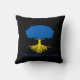 Show uw trots op uw Oekraïense erfgoed met dit kussen met gewortelde boomsilhouet in blauwe en gele kleuren van de Oekraïense vlag met aanpasbare tekst op zwarte achtergrond.