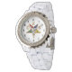 OES Custom Vrouwen Strass Wit Emaille Horloge
