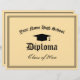 Officiële middelbare schoolschijfdiplomasjabloon met zegel. Elegant ontwerp met aangepaste tekst en gepersonaliseerde afstudeerdersnaam. Beige of aangepaste kleur achtergrond. Tweezijdige afdruk met kwast cap logo en fraaie rand. Officieel afstudeerdiploma, garantie, dossier en onderscheiding voor studenten.