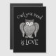 Owl schetch cartoon met hart gevormd lichaam en douanetekst.