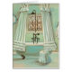 © Silvia Vassileva / Wilde Apple. Een ouderwetse badkamer in tinten blauw. Een badkuip, gordijnen en andere decoraties kunnen op het afbeelding worden gezien.
