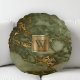 Olive Green Marble Faux Gold Foil Monogram Rond Kussen