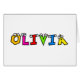Une drôle de police de caractères avec des yeux de dessin qui épellent le nom des filles OLIVIA. Trouvez d'autres noms dans cette série. Customisez facilement et choisissez votre propre couleur arrière - plan. Image disponible sur divers cadeaux et produits.