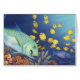 Un omilu (thonine trevally) suscite l'attention particulière d'un wrasse plus propre dans cette scène sous-marine. D'autres poissons : butterflyfish milletseed, butterflyfish de threadfin, butterflyfish de raton laveur et scare.
