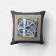 Een prachtige, decoratieve ingebedde keltische letter verlicht met grijze drakenkoppen op een fluwelig donkerblauwe achtergrond. Deze kussen hebben een dubbele rand van stenen design, licht met een donkere rand aan één kant, die achteraan achteruit achteruit achteruit staat. Verander de achtergrond om uw decor aan te passen.