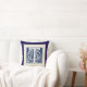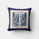 Een prachtige, decoratieve ingebedde keltische letter verlicht met grijze drakenkoppen op een fluwelig donkerblauwe achtergrond. Deze kussen hebben een dubbele rand van stenen design, licht met een donkere rand aan één kant, die achteraan achteruit achteruit achteruit staat. Verander de achtergrond om uw decor aan te passen.
